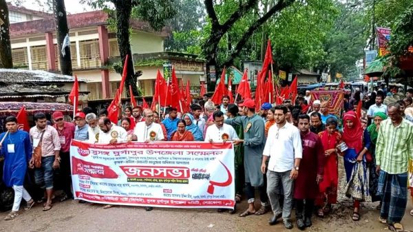 দুর্গাপুর (নেত্রকোনা) প্রতিনিধি : গণঅভ্যুত্থানে হত্যাকান্ডের সাথে জড়িতদের বিচার, নিতহ-আহতদের তালিকা তৈরী, আহতদের সু-চিকিৎসা ও পরিবারের পুনর্বাসন, চাঁদাবাজির হাতবদল প্রক্রিয়া বন্ধকরণ, বিদ্যুৎ পরিস্থিতির অবনতি ফিরিয়ে আনা, শিক্ষার্থী ও সংখ্যালঘুদের উপর হয়রানী বন্ধের দাবীতে সারাদেশের ন্যায় নেত্রকোণার দুর্গাপুরে বাংলাদেশের কমিউনিস্ট পার্টি দুর্গাপুর শাখার আয়োজনে এক সমাবেশ অনুষ্ঠিত হয়েছে। শনিবার বিকেলে পৌর